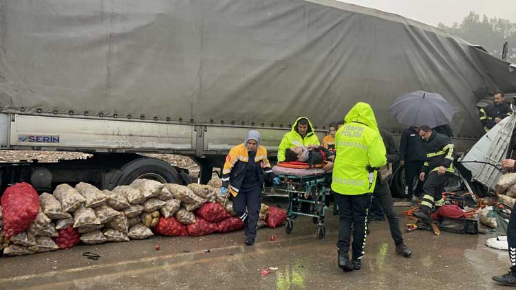 Sebze yüklü kamyon Tır’a çarptı: 2 yaralı