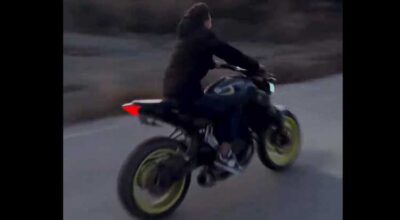 Defne’de trafikte motosikletle akrobatik hareketler yapan...