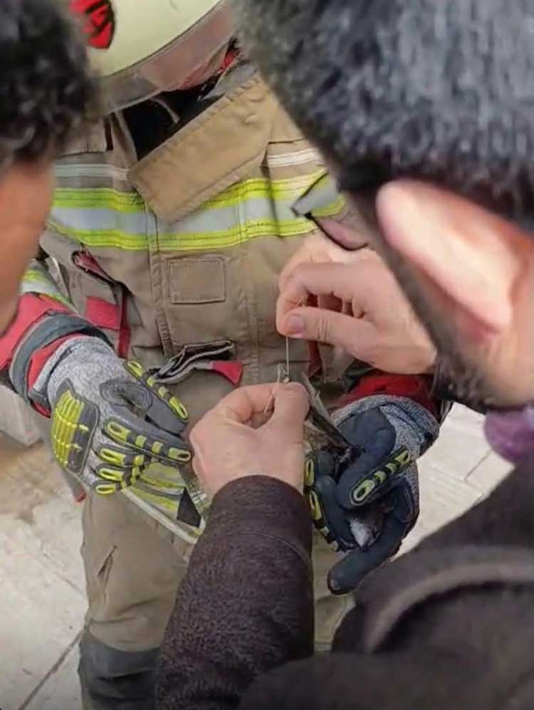 İskenderun’da kanadına ip dolanan kuş, itfaiye...
