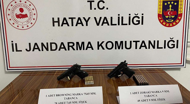Samandağ’da yol uygulamasında durdurulan otomobilde iki ruhsatsız tabanca ve fişek ele geçirildi, bir kişi gözaltına alındı.