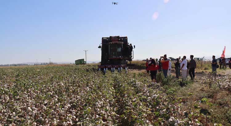 Pamuk hasat makinesine de binen Masatlı, hasat döneminin tüm çiftçilere hayırlı olmasını diledi.
