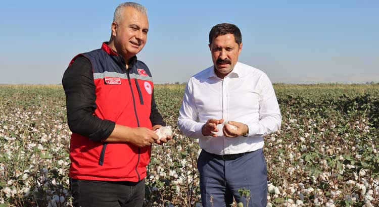 Hatay’ın pamuk üretiminde Türkiye 4’üncüsü olduğunu belirten Masatlı, “Tabii asırların felaketinden sonra hayatın her yanı ve yönüyle ilgili Sayın Cumhurbaşkanımızın başkanlığında yeniden ihya, inşa, imar ve üretim çalışmalarımız başladı. Bu çerçevede bizler de özellikle tarımın desteklenmesi noktasında Tarım ve Orman Bakanlığımızın koordinasyonunda, Valiliğimizin yürütümüyle beraber buradaki pamuk üreticilerimizin desteklenmesi noktasında bu yıl 1530 çiftçimize 153 ton pamuk tohumu dağıtmıştık. Şu anda 190 dekarlık bir sahada o dağıtmış olduğumuz tohumların ürün bulmuş halini hep beraber görüyoruz” dedi.