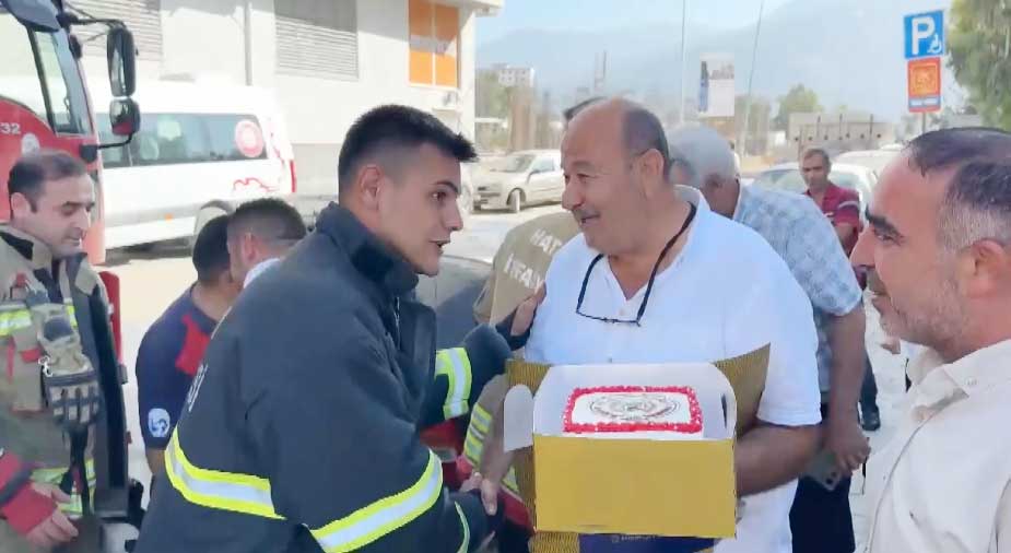 İskenderun’da İtfaiye Haftası’nı kutlamak için sözde yangın ihbarında bulunan bazı mahalle muhtarı, olay yerine giden ekiplere pastayla sürpriz yaptı.