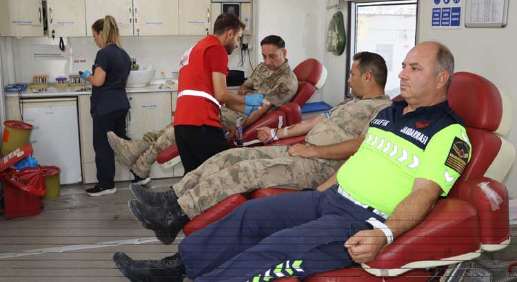 Hatay İl Jandarma Komutanlığı personelinin Kızılay’a kan bağışında bulunurken verdiği mesaj, bir kez daha jandarmanın varlığını gösterdi.