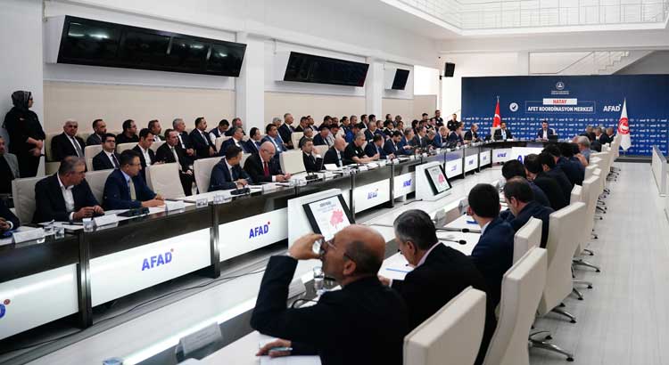 Çevre, Şehircilik ve İklim Değişikliği Bakanı Murat Kurum, asrın felaketinin ardından yürütülen imar ve inşa çalışmalarını yerinde incelemek için gittiği Hatay’da ilk olarak AFAD Afet Koordinasyon Merkezi’nde değerlendirme toplantısına katıldı.