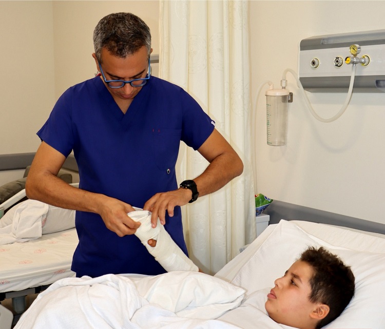 Hassa’da elini üzüm sıkma makinesine sıkıştırması sonucu bir parmağı kopan, diğerinde de doku kaybı olan 13 yaşındaki çocuğun parmakları Altınözü Devlet Hastanesi Ortopedi ve Travmatoloji Uzmanı Op. Dr. Mehmet Özer Dökmeci tarafından başarılı operasyonla dikildi.