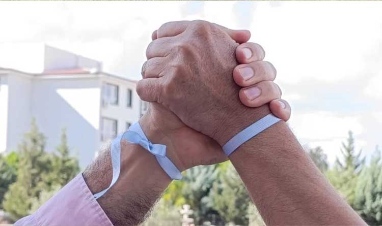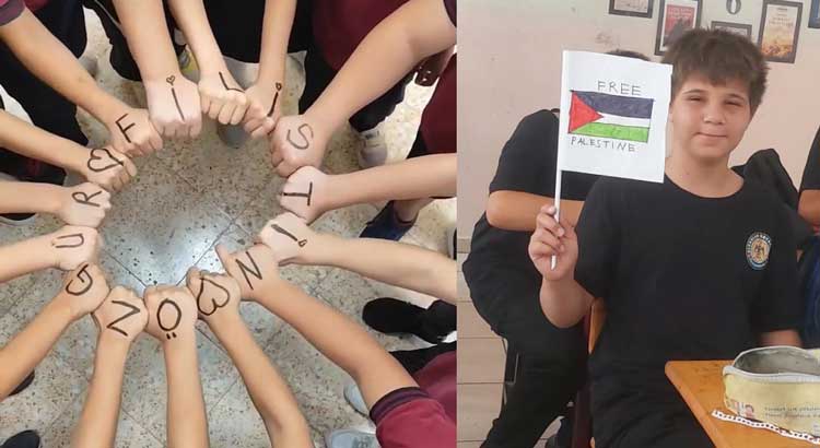 Öğrenciler ve öğretmenler ayrıca, bileklerine taktıkları mavi kurdelelerle Filistin’e ve SUMUD yardım filosuna desteklerini somut bir şekilde gösterdi.