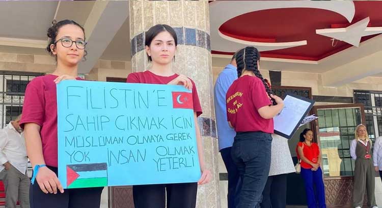 İskenderun İlçe Milli Eğitim Müdürlüğü’nden etkinliklerle ilgili yapılan açıklamada, “Türkiye Yüzyılı Maarif Modeli temel hak ve hürriyetler perspektifinde koşulsuz insan haklarına saygı, küresel barış ve dünyaya saygı ilkelerini merkeze konumlandırarak Filistin’deki insan hakları ihlallerinin sona erdirilmesine yönelik kararlı desteğimizi somut biçimde göstermek ve gençlerin insan hakları ile demokratik duyarlılığını, ortak sorumluluk bilincini en üst düzeyde pekiştirmek amacıyla eş zamanlı olarak ülkemizin genelinde olduğu gibi ilçemizdeki tüm okullarımızda Gazze Farkındalık Etkinlikleri düzenlenmiştir” denildi.
