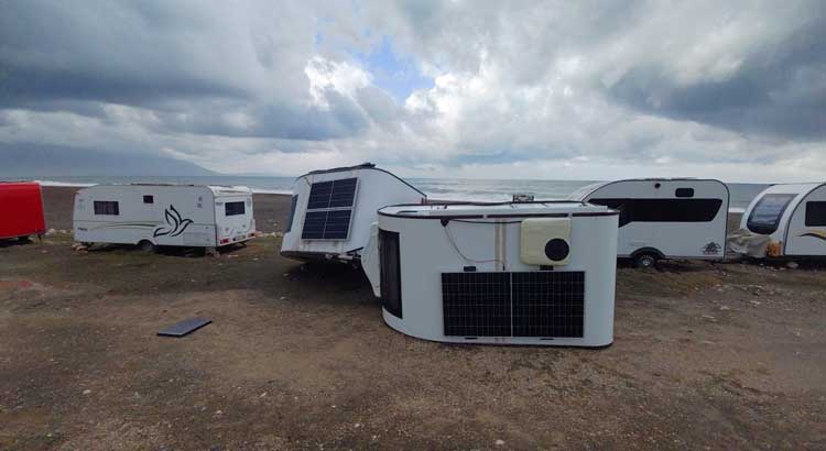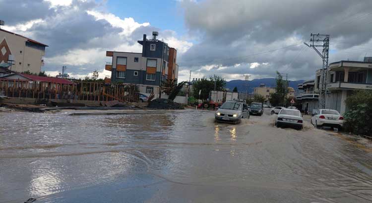 Samandağ’da etkili olan sağanak ve şiddetli rüzgar nedeniyle sahildeki bazı karavanlar devrildi, caddelerde su birikintileri oluştu.