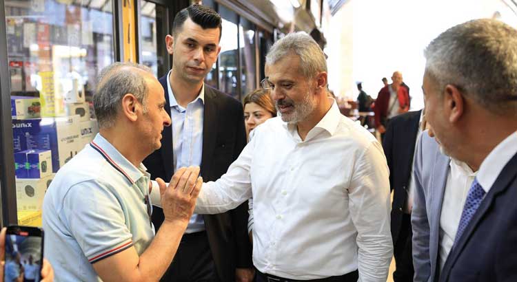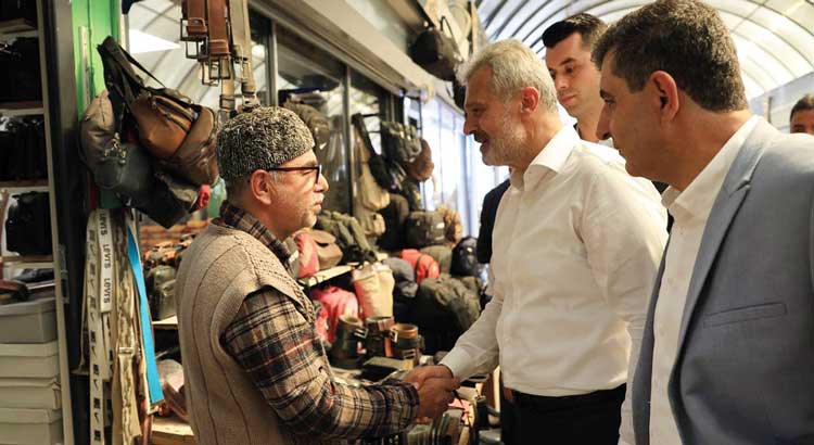 Uzun Çarşı’nın yeniden inşa ve ihya çalışmaları kapsamında yıkılmasının ardından çarşı esnafının hizmet vermeye başladığı İzzet Güçlü Caddesi üzerinde oluşturulan çarşıda esnafla istişarelerde bulunan Başkan Öntürk, esnafın kent ekonomisinin temel taşlarından olduğunu belirterek, her zaman yanlarında olduklarını söyledi.