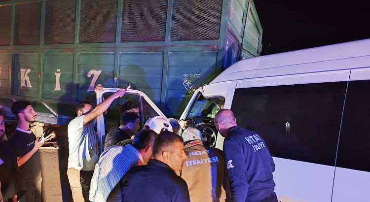 Reyhanlı’da yolcu minibüsü ile traktörün çarpışması sonucu 14 kişi yaralandı.