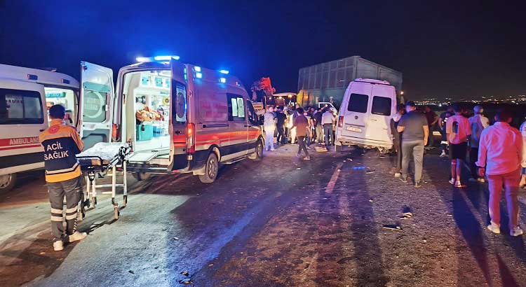 Araçta sıkışan 3 kişi itfaiye ekipleri tarafından kurtarıldığı kazada yaralanan 14 kişi hastanelere kaldırıldı.