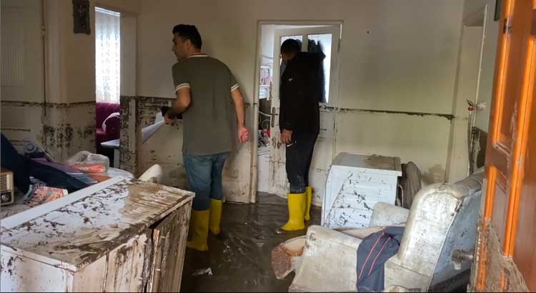 Yağış nedeniyle su basan ev ve iş yerlerinde temizlik de yapıldı.