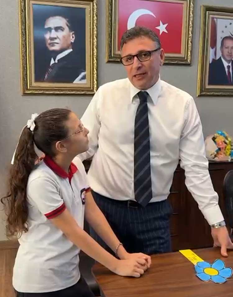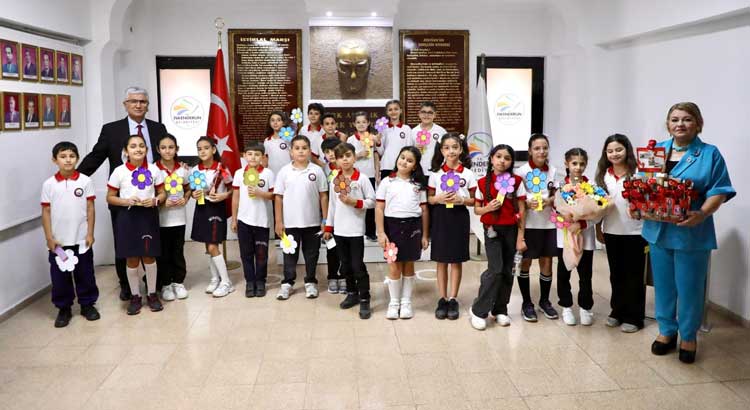 Okul Müdürü Hasan Şen, ziyaretin anısına çiçek, Çelikezen ise el emeğiyle hazırlanan ve 21 öğrencisini temsil eden Türk Bayrağı ve güllerle bezenmiş çiçek buketini Başkan Dönmez’e takdim etti.