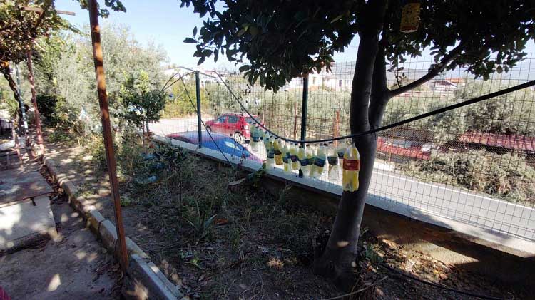Felsefe öğretmeni Zihni Berrak, doğal, kolay ulaşılabilir ve çevre dostu malzemeleri kullanarak hazırladıkları tuzaklarla meyvelerin kimyasal ilaçlara maruz kalmadan zararlıdan korunabildiğini söyledi.
