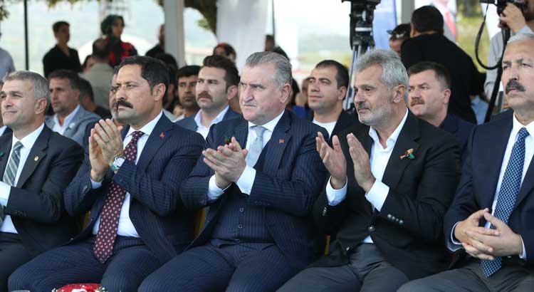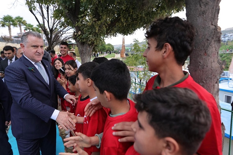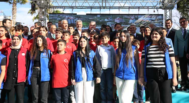 Konuşmaların ardından sahneye çıkan çocuklarla “Kırmızı-beyaz, en büyük Türkiye” sloganı atan Bakan Bak, daha sonra beraberindekilerle Altınözü Gençlik Merkezi’nin temelinin atılması için butona bastı.