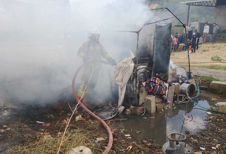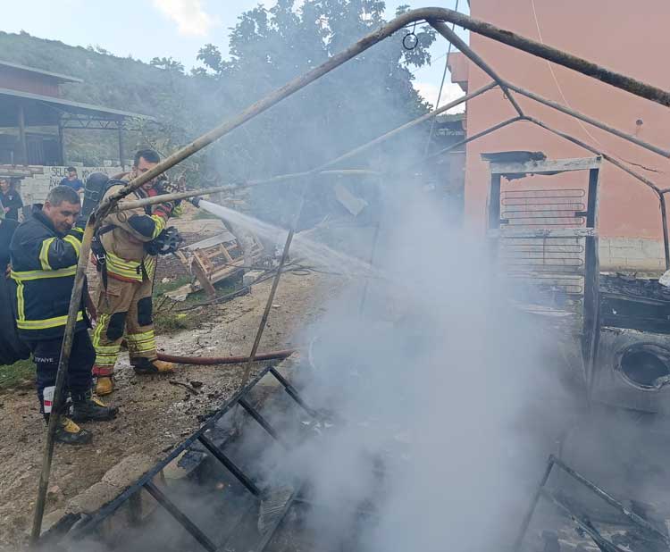 Çayır Mahallesi’ndeki müstakil evin bahçesindeki konteynerde henüz bilinmeyen nedenle yangın çıktı. Alevler, konteynerle birleşik çadıra da sıçradı.