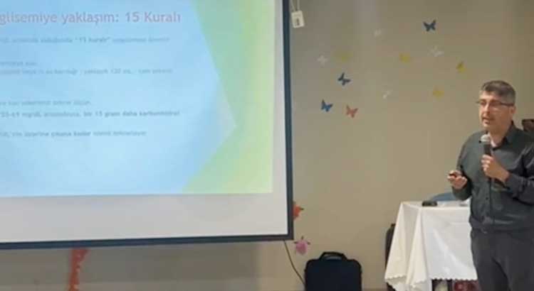 Etkinlikte davetli konuşmacı olarak yer alan Doç. Dr. Kemal Ağbaht, “Diyabetle Yaşamak: İşte, Okulda ve Özel Durumlarda Karşılaşılan Sorunlar ve Çözümleri” başlıklı sunumunda diyabetli bireylerin yaşam kalitesini artırmaya yönelik önemli bilgiler paylaştı.