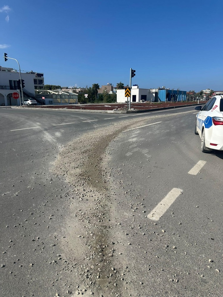 Çevredeki güvenlik kameralarının kayıtlarını inceleyen ekipler, yola harç dökerek ilerleyen aracın sürücüsünü belirledi. Sürücüye 8 bin 500 lira ceza uygulandı.