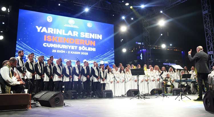 İskenderun’da 29 Ekim Cumhuriyet Bayramı kapsamında düzenlenen ‘Yarınlar Senin İskenderun Cumhuriyet Şöleni’nde Antakya Medeniyetler Korosu ile şarkıcı Gökhan Akar sahne aldı.