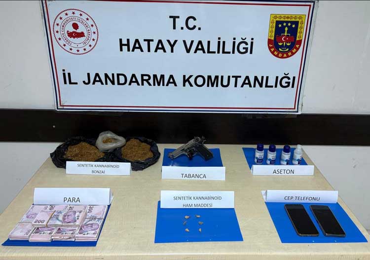 Ekipler, yapılan çalışmalar kapsamında, İskenderun Karayılan Mahallesi’nde ikamet eden Y.S. isimli şahsın uyuşturucu madde ticareti yaptığı yönünde bilgiler elde etti. Elde edilen bilgiler doğrultusunda, şüpheli şahsın ikameti ve eklentilerinde yapılan adli aramada kuş kümesinde gizlenmiş vaziyette 2500 gram sentetik kannabinoid, 10 gram sentetik kannabinoid hammaddesi, 4 adet aseton, 101.800 TL nakit para, 1 adet ruhsatsız tabanca, 2 adet cep telefonu ele geçirildi.