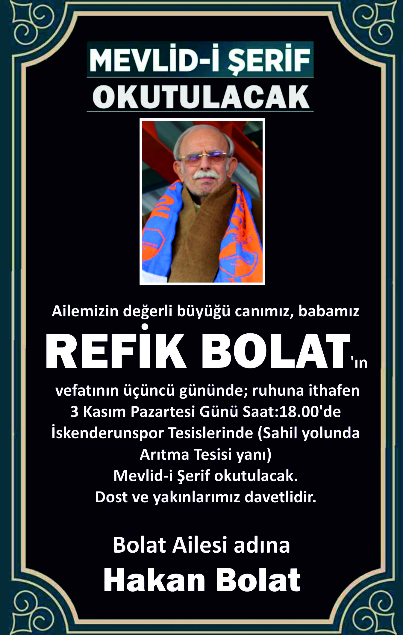 Genel, Gündem, Önemli HaberMevlid-i Şerif Okutulacak Oluşturulma Tarihi: 2 Kasım 2025 – 13:412 Kasım 2025 – 13:41 Yazar: Söz Gazetesi İskenderun ADD’ye selam olsun! Trafik de trafik!