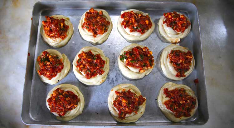 Açılan hamurun içine kıyma, soğan, salça ve baharat karışımının konulmasıyla hazırlanan ve taş fırınlarda pişirilen geleneksel lezzetin ustaları, Hataylıların vazfeçilmez lezzetini Avrupa Birliği tesciliyle çok daha fazla kişiye ulaştırmak istiyor.