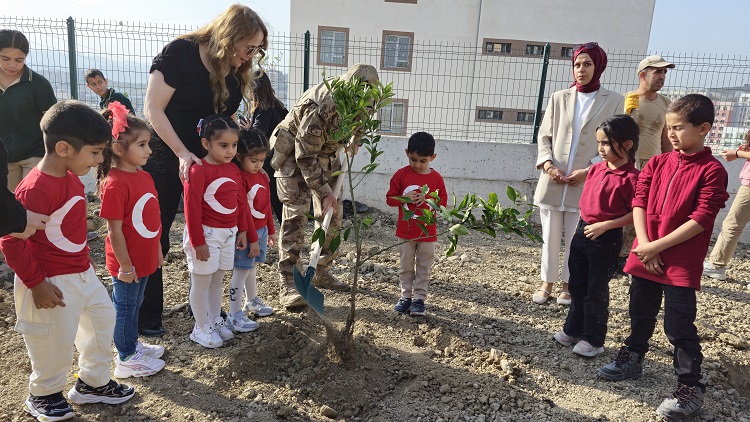 Hatay İl Jandarma Komutanlığı ekipleri, toplum destekli faaliyetleri kapsamında Antakya Alazi İlkokulu öğrencileriyle narenciye ve zeytin fidanlarını toprakla buluşturdu.