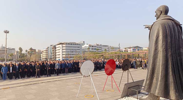 Türkiye Cumhuriyeti’nin kurucusu ulu önder Gazi Mustafa Kemal Atatürk’ün aramızdan ayrılışının 87’inci yıldönümünde Türkiye genelinde olduğu gibi İskenderun’da adeta hayat durdu. Saatler Ata’nın ölüm saati olan 9.05’i gösterdiğinde İskenderunlular kentin her yerinde sirenler eşliğinde saygı duruşuna geçti.