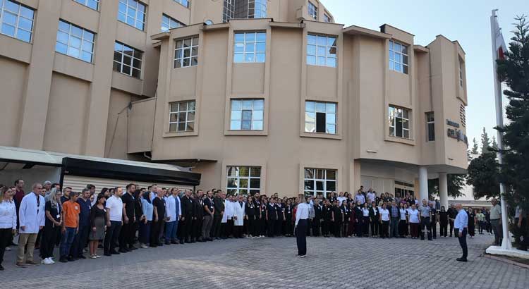 Saatler 09.05’i gösterdiğinde, her iki hastanede de sirenler çaldı; yöneticiler, sağlık çalışanları, doktorlar, hemşireler, hastalar ve hasta yakınları 2 dakikalık saygı duruşunda bulundu. Ardından İstiklal Marşı okunarak Atatürk’e olan minnet ve saygı bir kez daha dile getirildi.