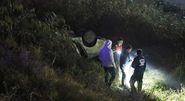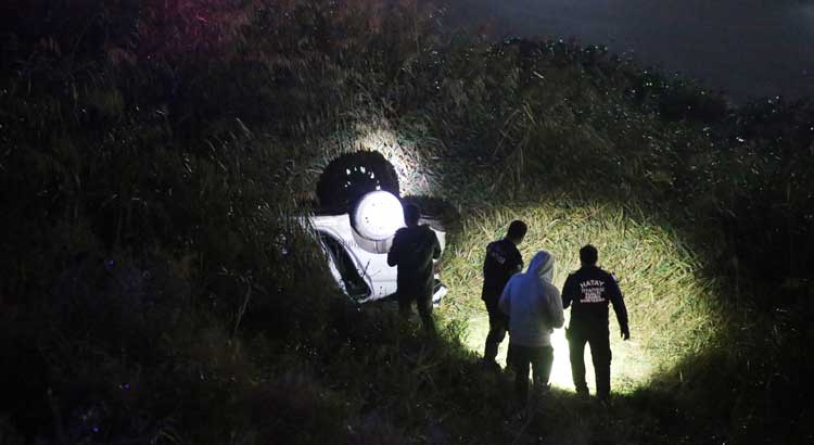Sürücüsünün ismi öğrenilemeyen ve düzensiz göçmenleri taşıyan 34 ECR 787 plakalı otomobil, Güzelburç Mahallesi’nde Asi Nehri’ne devrildi.