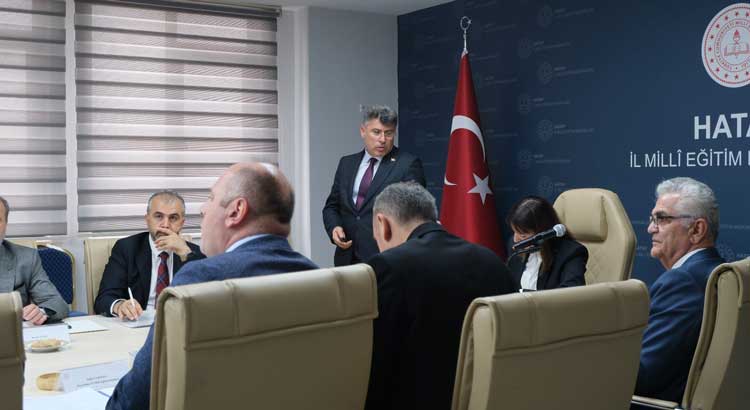 Valilik ziyaretinin ardından Hatal İl Milli Eğitim Müdürlüğü’ne geçen Genel Müdür Aynur Gökalp Durna, İl Müdürü Dr. Harun Tüysüz’le makamında biraraya geldikten sonra İlkay Gök Toplantı Salonu’nda, deprem bölgesindeki illerin millî eğitim müdürleri ve inşaat-emlak birim yöneticilerinin katılımıyla değerlendirme toplantısı gerçekleştirdi.