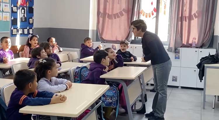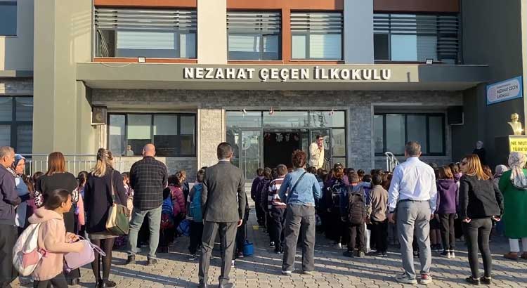İskenderun Nezahat Çeçen İlkokulu’nda düzenlenen törende İstiklal Marşı’nın okunması ve okul müdürünün ‘hoşgeldiniz’ konuşmasının ardından sınıflarına giriş yapan öğrenciler, tatil sonrası arkadaşları ve öğretmenleriyle yeniden kucaklaştı.