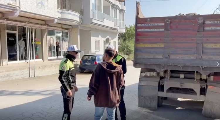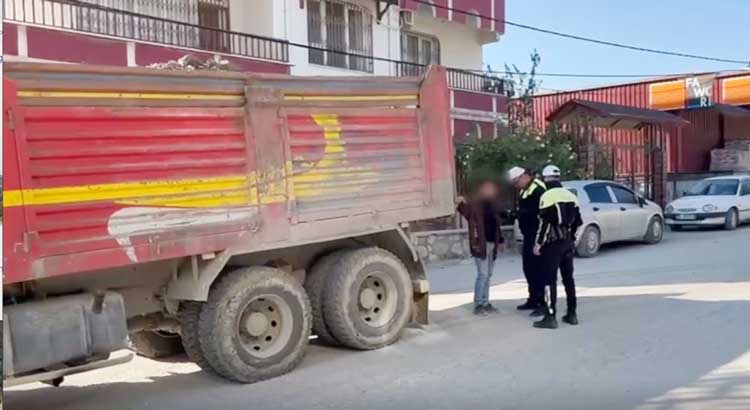 Denetimde durdurulan plakası öğrenilemeyen kamyonun sürücüsü Uğur Ç.’nin ehliyetinin olmadığı belirlendi.