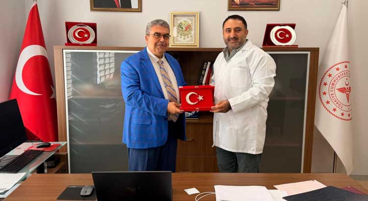 Hatay İl Sağlık Müdürü Dr. Sıtkı Sönmez, Hatay Eğitim ve Araştırma Hastanesi Başhekimliği görevine atanan Uzm. Dr. Barış Kavvasoğlu’na hayırlı olsun ziyaretinde bulundu.