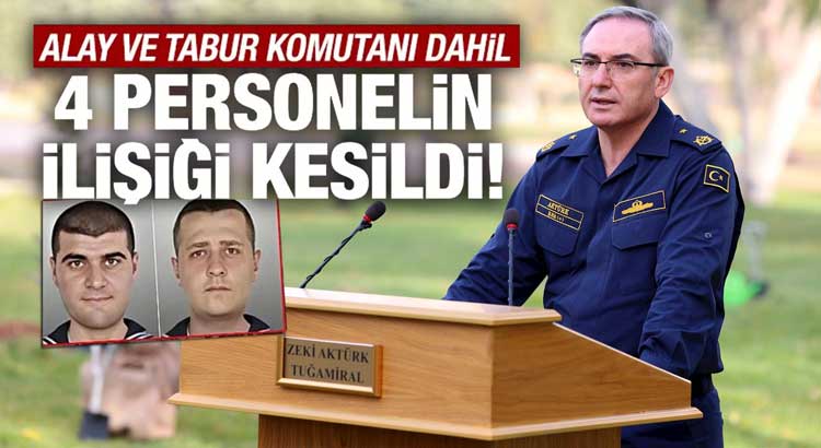 Milli Savunma Bakanlığı, İskenderun’da iki askerin şehit olduğu olayda kastı, kusuru, ihmali olan alay ve tabur komutanı dahil 4 personelin TSK ile ilişiğinin kesildiğini, 8 personele ise disiplin cezası verildiğini duyurdu.