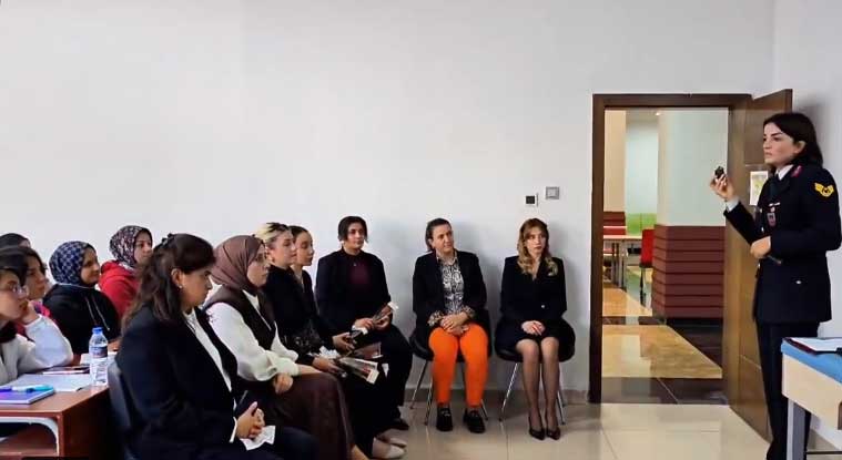 Hatay İl Jandarma Komutanlığı, kadına yönelik şiddetle mücadele kapsamında Mustafa Kemal Üniversitesi Sağlık Bilimleri Fakültesi öğrencilerine yönelik bilgilendirme ve farkındalık eğitimi verdi.