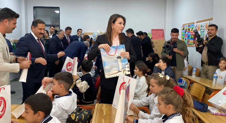 Açılış kurdelesinin kesilmesinin ardından, sınıfları gezen Vali Mustafa Masatlı ve eşi Esra Masatlı öğrencilere çeşitli hediyeler dağıttı.