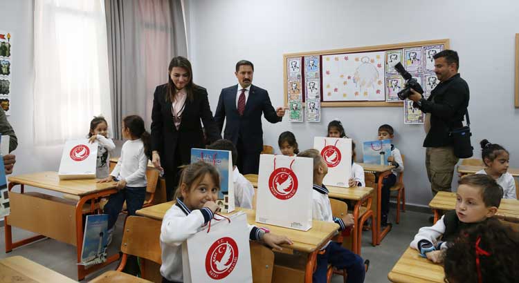 Konuşmaların ardından okulun açılışını yapan protokol üyeleri, sınıfları gezip öğrencilere hediye verdi.