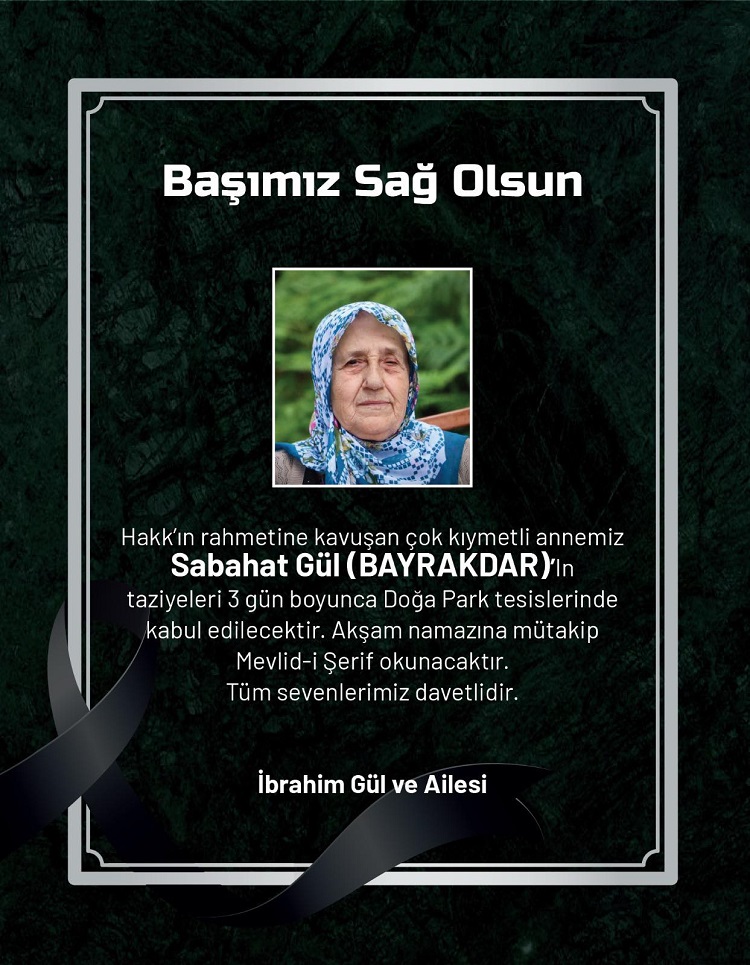 Merhume Sabahat Gül’ün ruhu için akşam namazına müteakip Mevlid-i Şerif okunacaktır.