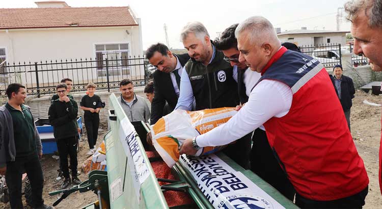 Hatay Büyükşehir Belediyesi(HBB), “Her Tohum Bir Gıda” projesi kapsamında Saadet Yusuf Mıstıkoğlu Tarım Mesleki Teknik Anadolu Lisesi’nin tarım profesyonellerine önemli bir destek sağladı. HBB, yeni eğitim-öğretim döneminde yürütmesi planlanan araştırma ve geliştirme çalışmalarına katkı sunması amacıyla, liseye ait 52 dekar araziye ekilmek üzere 1.500 kg beyazhan çeşidi buğday tohumu ile 1.000 kg. gübre teslim etti.