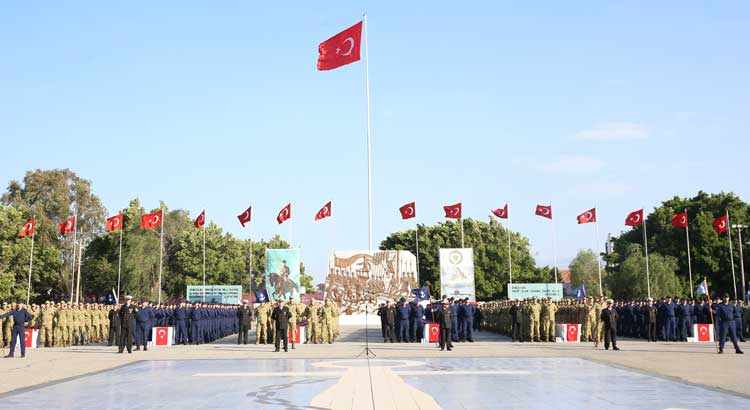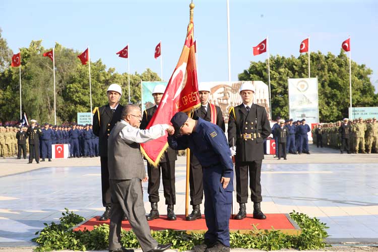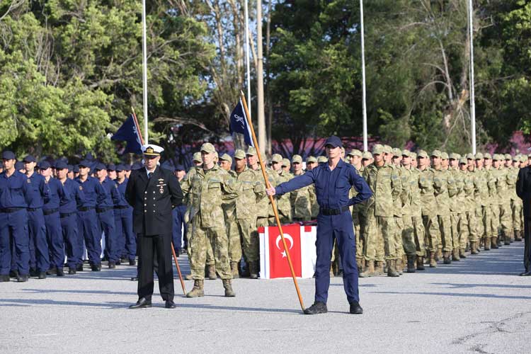 2025-4 dönem acemi erler için düzenlenen törende sancak geçişinin ardından, İskenderun Deniz Üs Komutanı Tuğamiral Osman Çevik, askerleri ve aileleri selamladı.