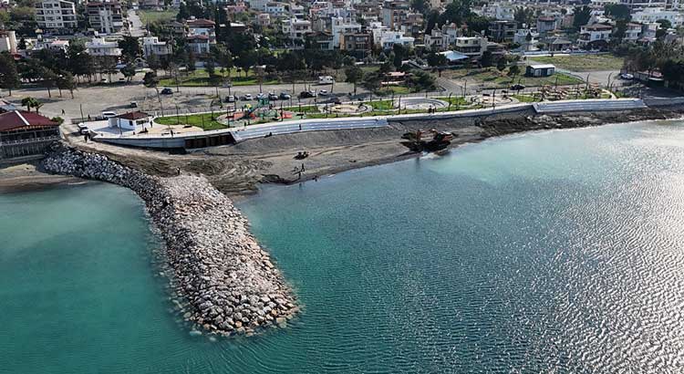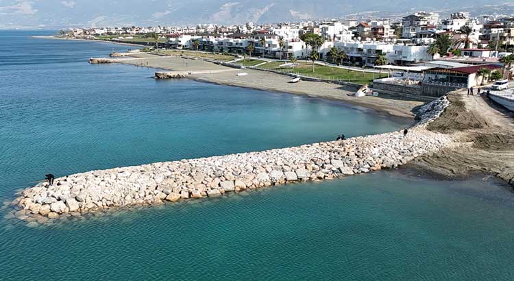 Hatay Büyükşehir Belediyesi, Arsuz’a bağlı Karaağaç Mahallesi’ndeki Diba Sahil Düzenleme Projesi kapsamında 70 metre uzunluğunda mendirek inşa etti.