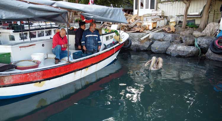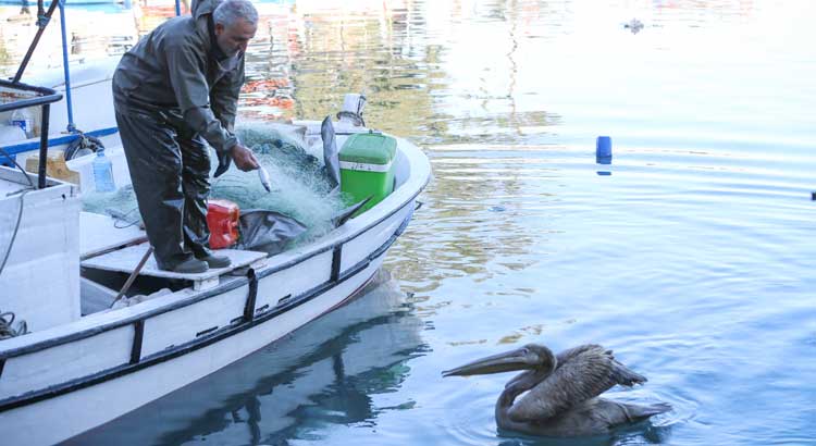 Balıkçı barınağının çevresinde yürüyüş yapan vatandaşlardan Ertuğrul Deniz ise şunları kaydetti, “Davetsiz misafirimiz geldi ve buraya alıştı. Tekneci arkadaşlarda gayet güzel bakıyor, balığını yediriyor. Öğleden sonra da başka yere kümeleniyor. Sabah gün ışığında geri gelip rızkını yiyor. Burada neşeli bir görüntüsü var. Her sabah yürüyüşten sonra buraya uğrarım. Çay içerken onu izliyorum. Bana mutluluk ve huzur veriyor.”