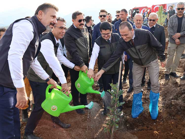 Bir ağacın yok oluşunun aslında bir canlının, bir yaşamın, bir umudun yok oluşu olduğunu sölyleyen Vali Masatlı, “Ormanlarımızın yalnızca birer ağaç topluluğu değil, bir şehrin nefesi, doğanın kalbi ve yarınlarımızın güvencesi olduğu bilinciyle hareket ediyoruz. Bugün Arsuz’umuzda 5 bin fidanı toprakla buluşturarak; geleceğe nefes, evlatlarımıza miras, şehitlerimize ise ebedî bir hatıra bırakıyoruz. Eminim ki bu fidanlar büyüdükçe, yeşerdikçe, kök saldıkça; hem kaybettiklerimizi hem de yeniden ayağa kalkma irademizi hatırlatacaktır. Diktiğimiz bu fidanlar; zamana karşı dimdik duracak bir vefa abidesi, bir ekolojik hatıra alanı ve Yeşil Türkiye vizyonumuzun güçlü bir yansımasıdır. Bugün toprakla buluşturduğumuz bu fidanlar, yarın gölgesinde çocuklarımızın oynayacağı, kuşların yuva kuracağı, temiz havasını ciğerlerimize çektiğimiz yaşayan bir anıt olacaktır. Şehitlerimizin adları bu ormanda yaşamaya devam edecek; bizler de her fidanla geleceğe umut eken bir toplum olmanın gururunu taşıyacağız. Arsuz Deprem Şehitleri Hatıra Ormanı’mızın ilimize ve ülkemize hayırlı uğurlu olmasını diliyor, bir daha böyle acılar yaşamamayı niyaz ederek, Hatay’ımızdaki bu büyük yeniden doğuşun mimarı olan, her aşamada yanımızda duran Sayın Cumhurbaşkanımıza bir kez daha şükranlarımızı arz ediyorum” dedi.