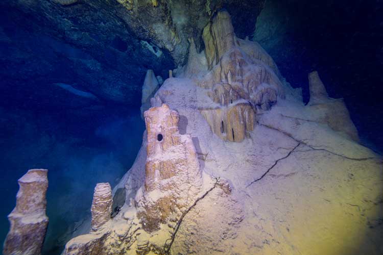 Su altı mağarasındaki kum piramitleri, bacaları, sarkıt ve dikitleri görüntüleyen dalgıçlar, etkinlik boyunca deniz canlılarının renkli dünyasına tanıklık etti.