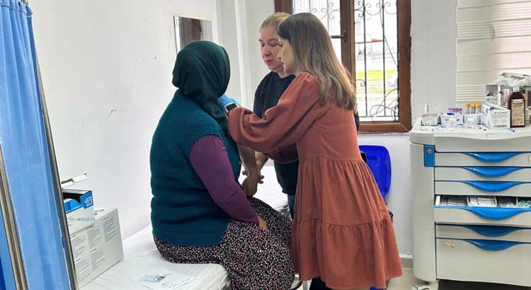 İlçe Sağlık Müdürlüğü Bulaşıcı Hastalıklar Birimi’nde görevli Ebeler Kevser Ülkümen ve Sibel Caymaz Altundağ, Yukarı Kepirce Mahallesi’nden umreye gidecek vatandaşlara menenjit aşısı uygulayarak, yolculuk öncesi gerekli koruyucu sağlık tedbirlerini aldı.