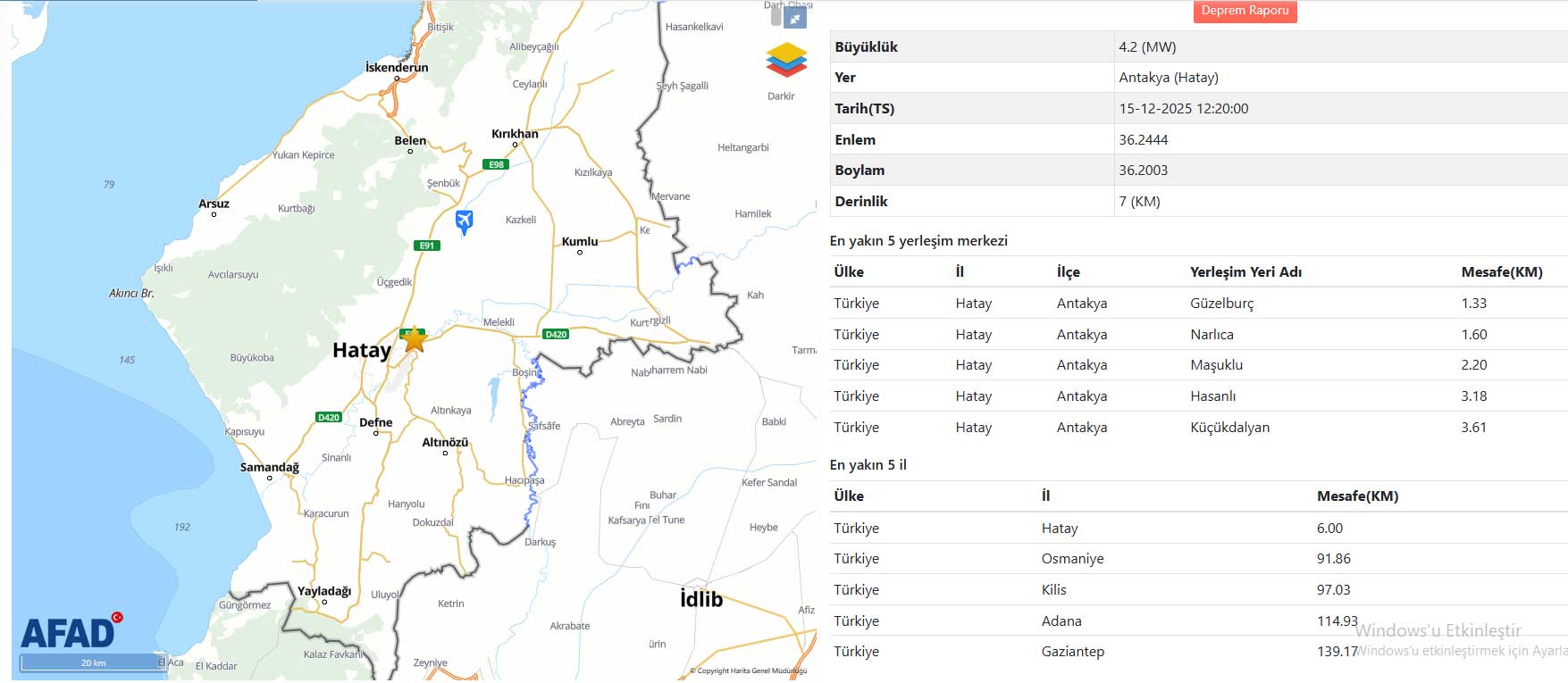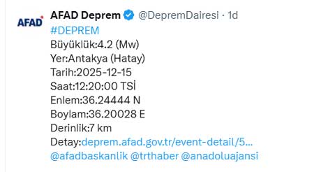 Hatay Valiliğinden yapılan açıklamada, “Şu ana kadar 112 Acil Çağrı Merkezine herhangi bir olumsuz ihbar gelmemiştir. Gelişmeler takip edilmektedir” ifadesi kullanıldı.