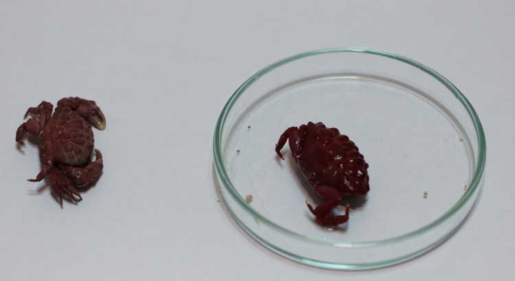 Akdeniz’de balıkçılar tarafından bulunan, Hint-Pasifik kökenli kırmızımsı mor renkli oluklu iki yengeç, İskenderun Teknik Üniversitesi(İSTE) Deniz Bilimleri ve Teknolojisi Fakültesi’nde incelemeye alındı.