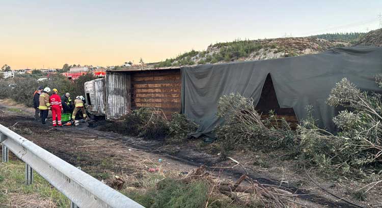 Mehmet Handaş idaresindeki plakası öğrenilemeyen büyükbaş hayvan yüklü tır, Adana-İskenderun Otoyolu’nun Yeşil Mahallesi mevkisinde refüje çarparak devrildi.
